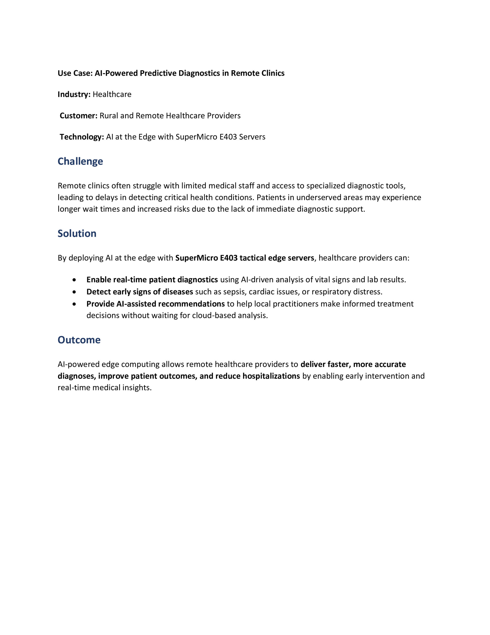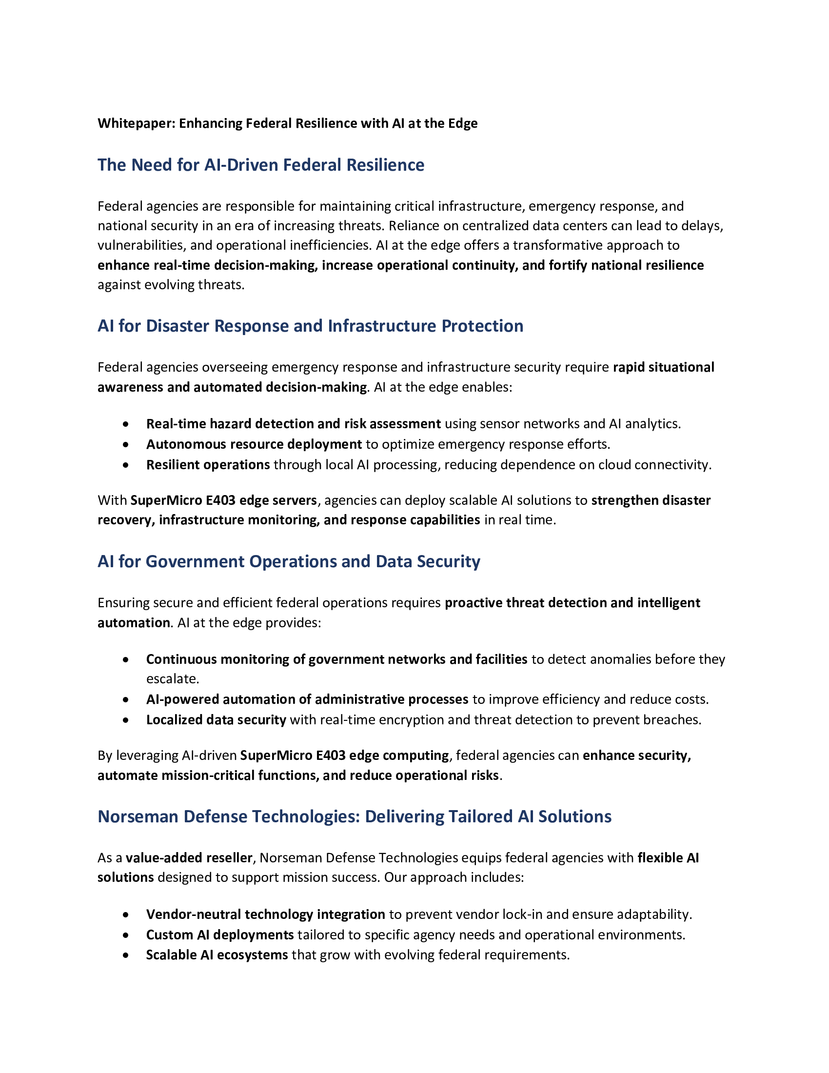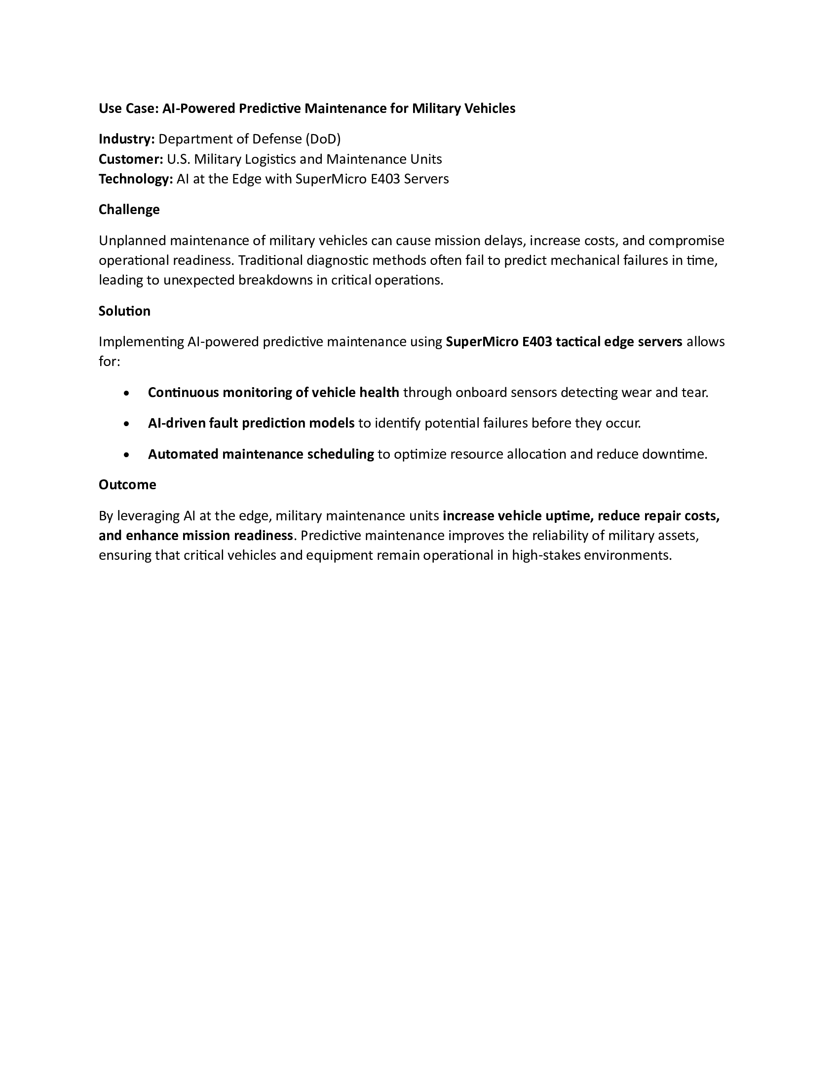 Use Cases AI-Driven Situational Awareness for Oil & Gas Operations Learn More AI-Enhanced Battlefield Situational Awareness Learn More AI-Powered Border Security & Surveillance Learn More Enhancing Federal Resilience with AI at the Edge Learn More AI-Powered Predictive Maintenance for Military Vehicles Learn More AI-Driven Situational Awareness for Oil & Gas Operations Learn More AI-Driven Emergency Response for Disaster Management Learn More AI-Enhanced Medical Imaging for Faster Diagnoses Learn More AI-Powered Predictive Diagnostics in Remote Clinics Learn More